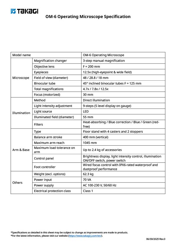 TAKAGI Accessories Introduction OM 6 Operating Microscope
