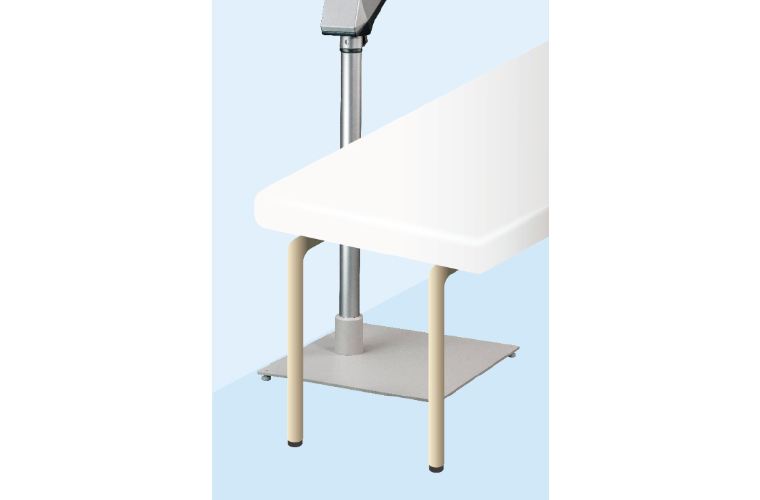 Replacing the base with the Flat Base (O01-19) allows installation along a wall, and placing the base unit under the bed ensures safe and comfortable procedures or surgeries even in tight spaces.