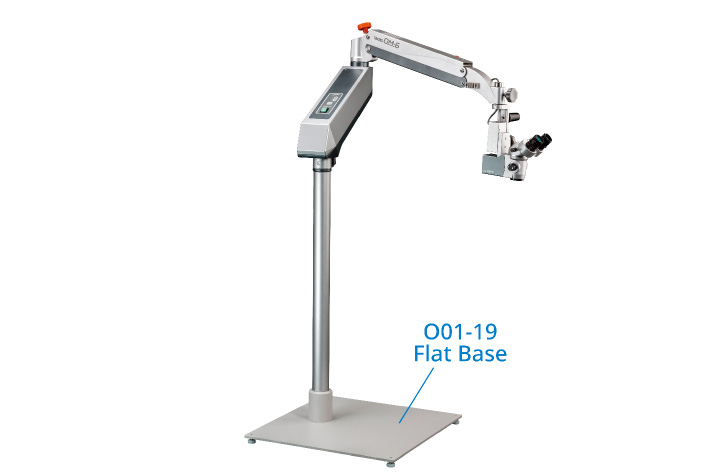 If the base is replaced with a flat base (O01-19), it is possible to install the microscope flush to the wall, and the base can be placed under a bed, enabling safe and comfortable procedures and operations even in confined spaces.