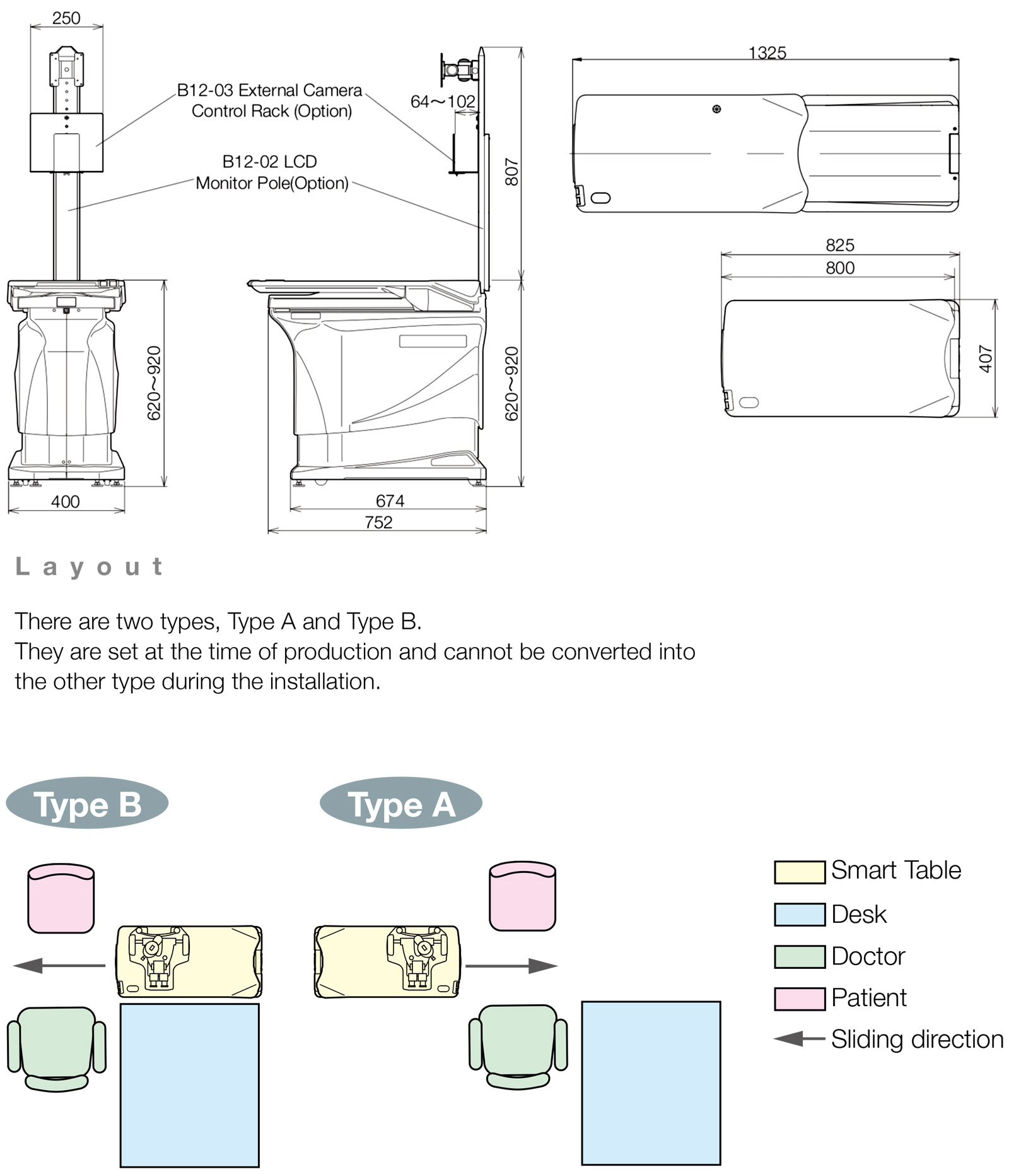 All mechanical parts on the underside of the slide table are concealed to create a large leg space under table. It is designed to accommodate all patients regardless of their size and provide enough space for a wheelchair.