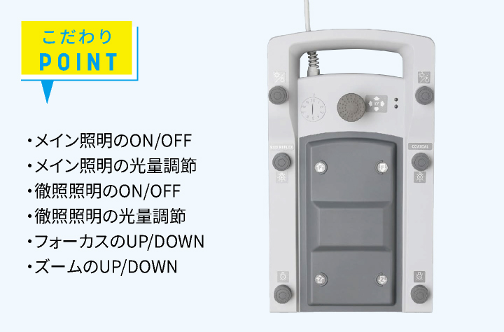 多機能フットコントローラーや助手用顕微鏡、自在に調整できるチルト機構を搭載。術者と助手双方に最適な視野と操作性を提供し、負担を軽減しながら円滑で効率的な手術を支援します。