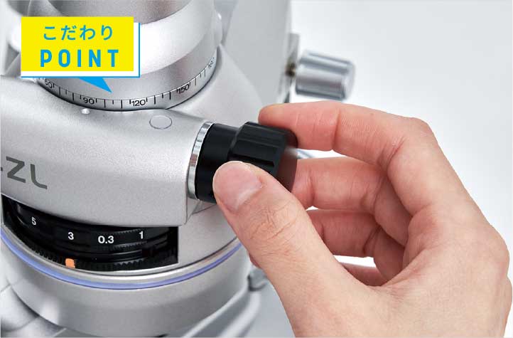リボルバー式2変倍、グリノー式光学系、LED照明