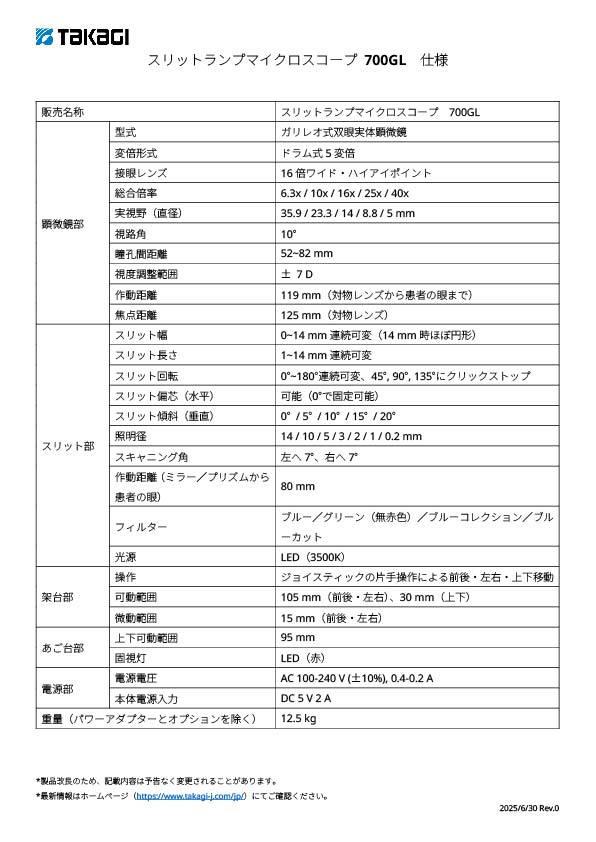 TAKAGI アクセサリー紹介 700GL スリットランプマイクロスコープ